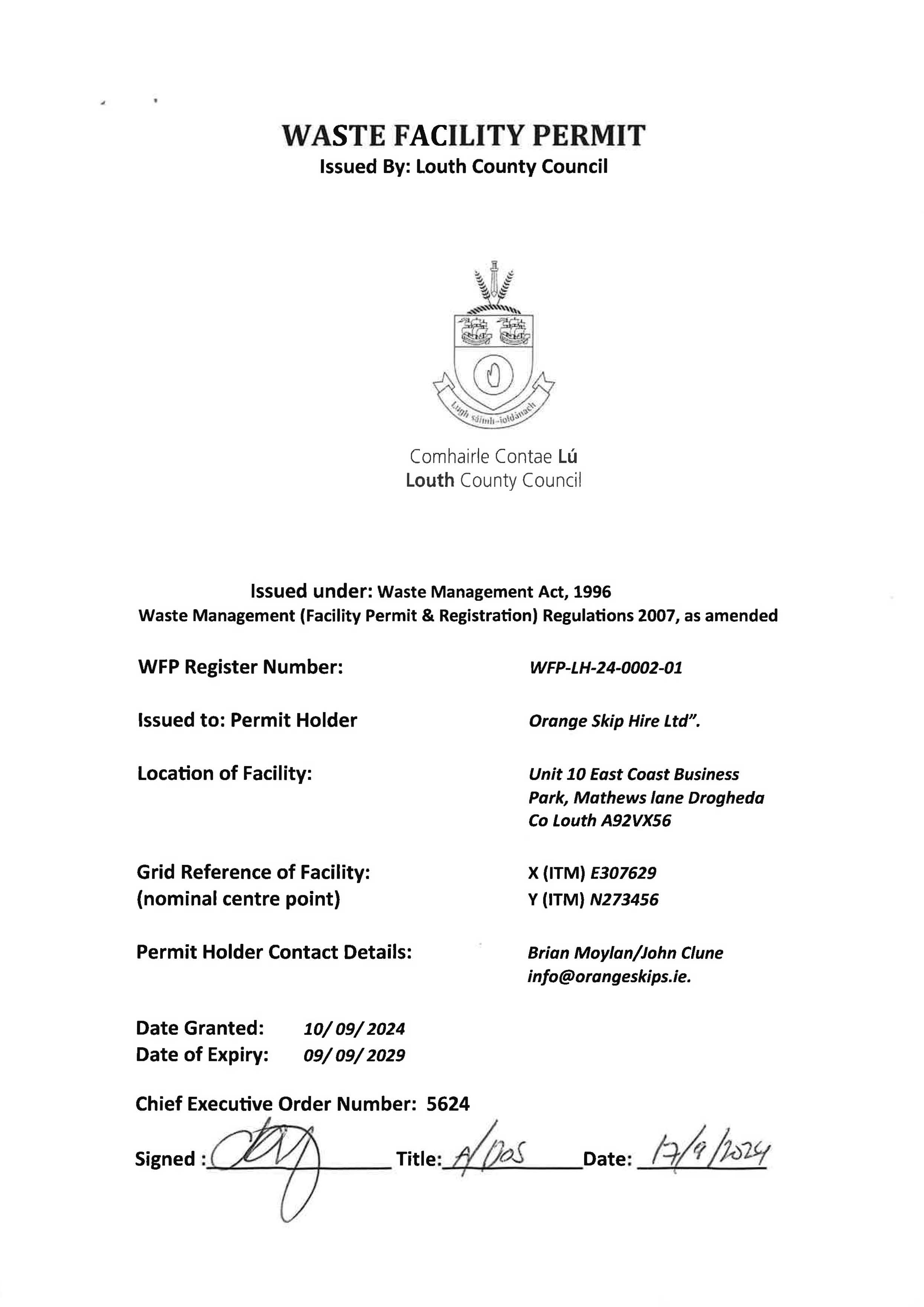 Orange Skip Hire Waste Permit