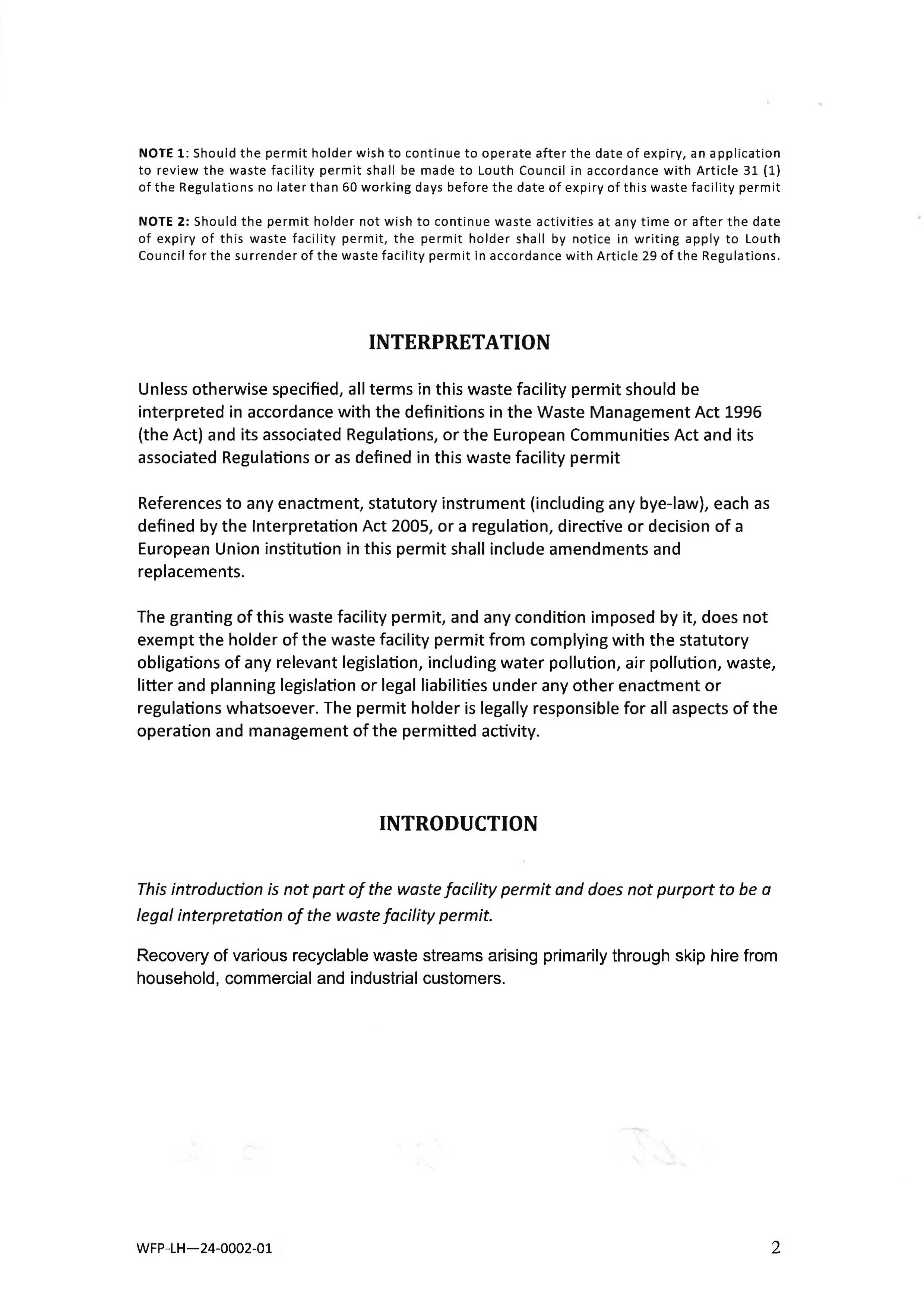 Click to view Waste Permit PDF